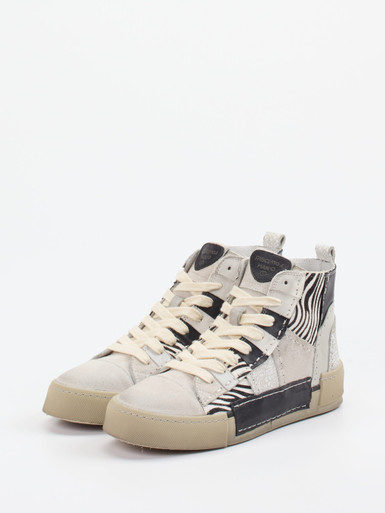 Rebecca White bringt unkonventionelle Streetwear an den Fuß: Damen-Modelle mit großzügigen Besätzen aus Strasssteinen und Nieten, oft kombiniert mit ungewöhnlich gestalteten Sohlen. Die Kollektion setzt auf markante Details für den Alltag und verbindet expressives Design mit komfortorientiertem Tragegefühl. Italienische Verarbeitung und präzise Ausarbeitung prägen die Linie, von Sneaker-Silhouetten bis zu urbanen Boots.