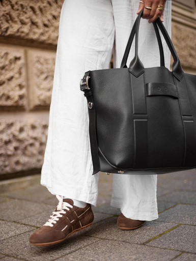 Vom zurückhaltenden Low-Top bis zum sportiven Plateau-Sneaker: Das moderne Design-Spektrum reicht von minimalistischen Klassikern bis hin zu ausdrucksstarken Statement-Schuhen. Charakteristische Details wie Ton-in-Ton-Ziernähte, Kontrast-Schnürsenkel oder Applikationen in Gold, Silber und Kupfer heben gezielt die Struktur des Materials hervor. Besonders gefragt sind Braun- und Cognactöne, die in Kombination mit hellen Outfits kühl und modern, zu kräftigen Herbstfarben hingegen warm und voller Charakter wirken.