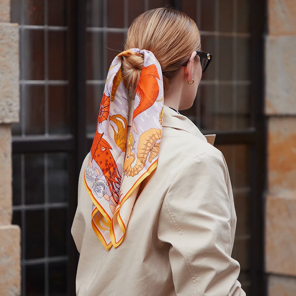 Vom unifarbenen Basic-Piece für den Alltag zum extravaganten Designerstück: sommerliche Tücher sind wahre Multitalente. Lassen Sie sich von Grace Kelly inspirieren, die Seidentücher gern als elegante Armschlinge trug, oder machen Sie es wie Audrey Hepburn und nutzen sie ein Tuch als ausdrucksstarkes Haarband. Besonders angesagt sind sie diese Saison als Charms - verspielte Akzente an der Handtasche.