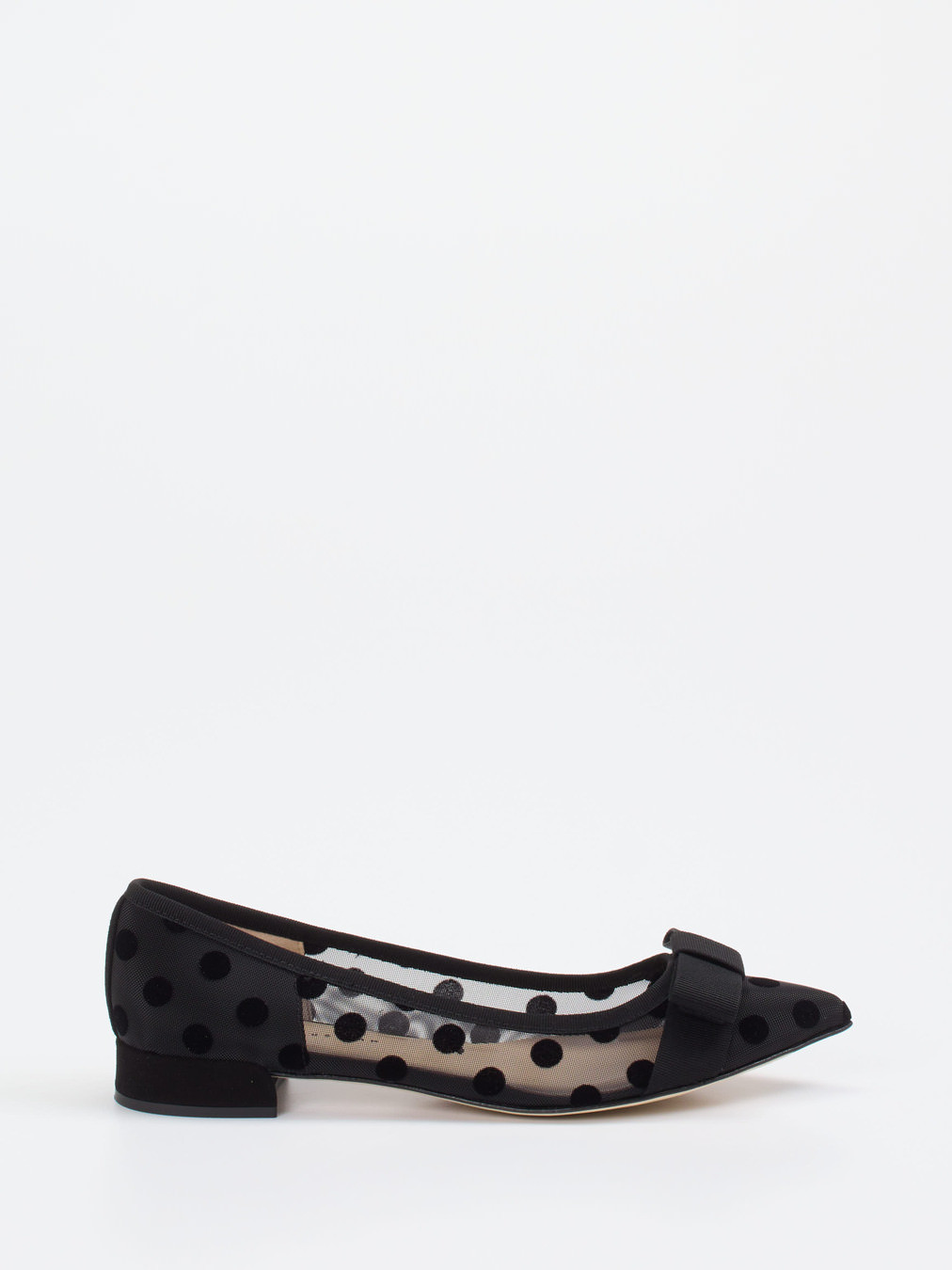 Diese Ballerinas vereinen halbtransparentes Mesh mit samtigen Punkten zu einem femininen Look im Stil der 50er. Ideal für stilvolle Sommermomente mit Vintage-Attitüde.