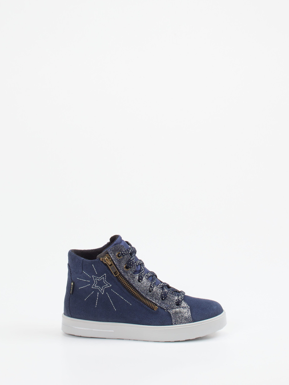 Der kindgerechte Sneaker vereint hochwertiges Veloursleder mit glitzernden Details und funktionalem Reißverschluss. Ideal für aktive Alltagssituationen und entspannte Freizeitmomente.