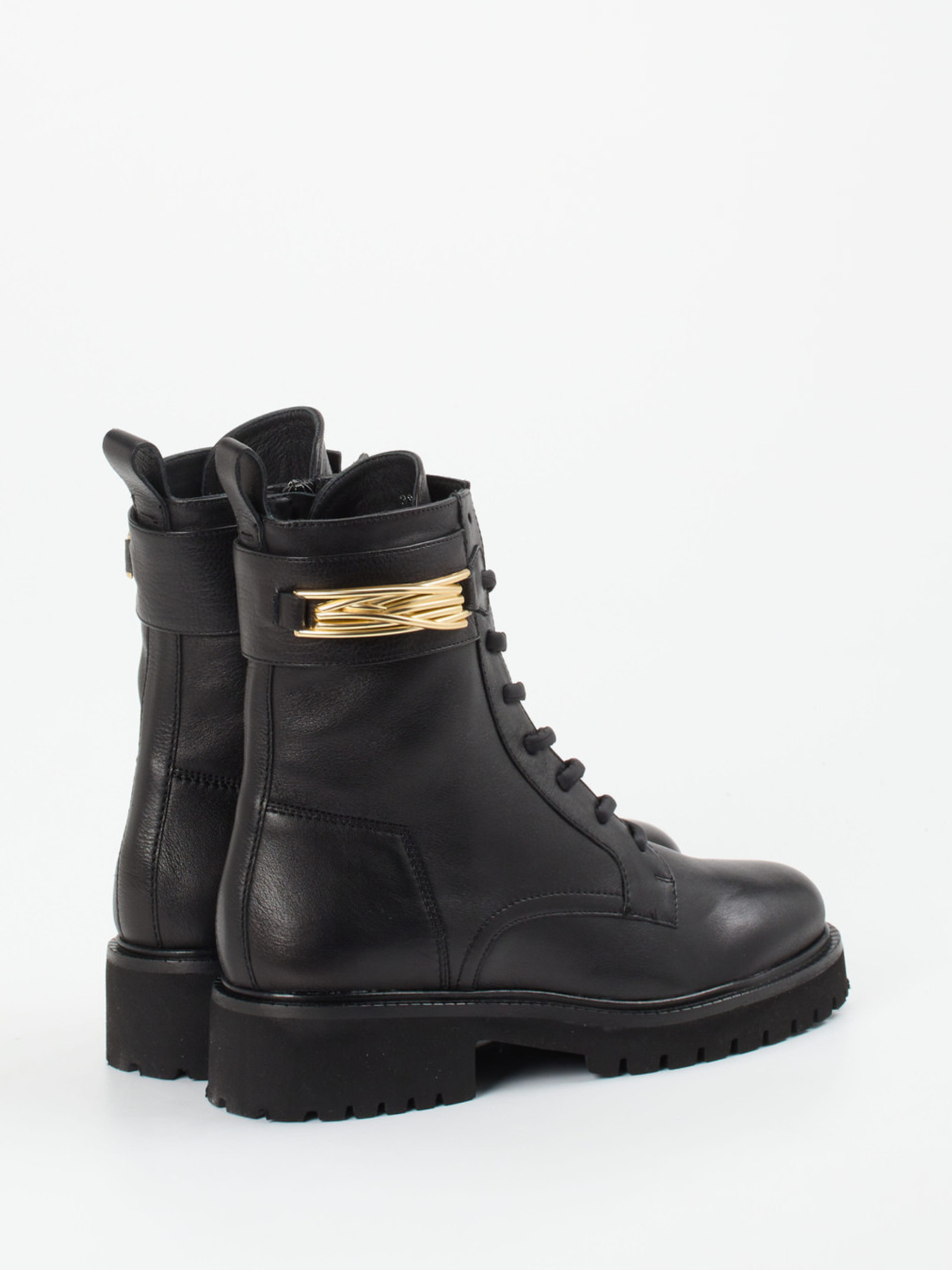 Donna Carolina bringt mit diesen Schnürboots einen modernen Streetstyle auf den Punkt – Kalbleder und Gold-Detail setzen stilvolle Akzente.
