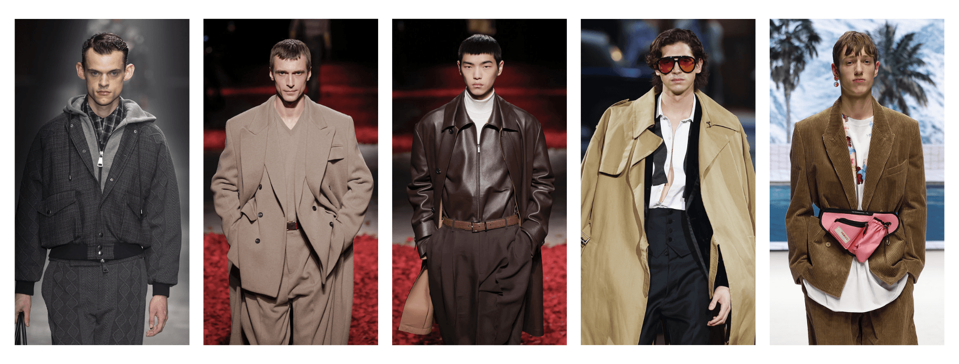 Sakkos, Hosen und Mäntel kommen in lockeren Silhouetten mit hohem Tragekomfort: Stretchige Performance-Stoffe, Tunnelzug-Hosen mit Bundfalten oder Matching Sets bringen Lässigkeit ins Office. Dazu passen Jersey-Blazer, Hybridmäntel mit Stehkragen in Schokofarben und der aufgelockerte Anzug für Business-Trips – das Outfit für das „New Office“.