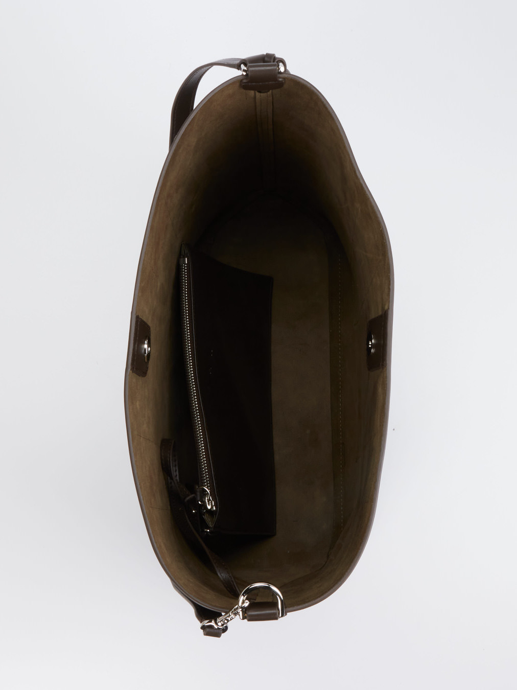 Dieser edle Shopper aus Kalbleder überzeugt mit minimalistischer Formgebung und praktischer Ausstattung – perfekt für den urbanen Alltag mit Stilanspruch.