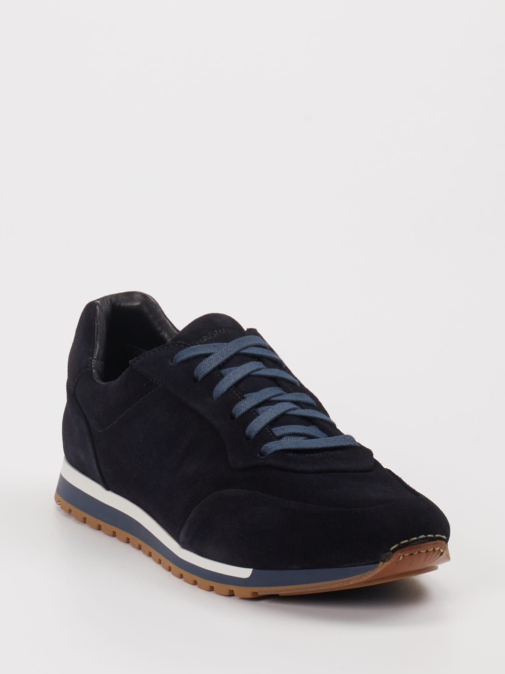 Der Low-Top-Sneaker von Magnanni verbindet samtiges Veloursleder mit einer profilierten Gummisohle. Die reduzierte Silhouette in tiefem Blau wirkt smart casual und bleibt angenehm vielseitig fürs Büro und die Freizeit.